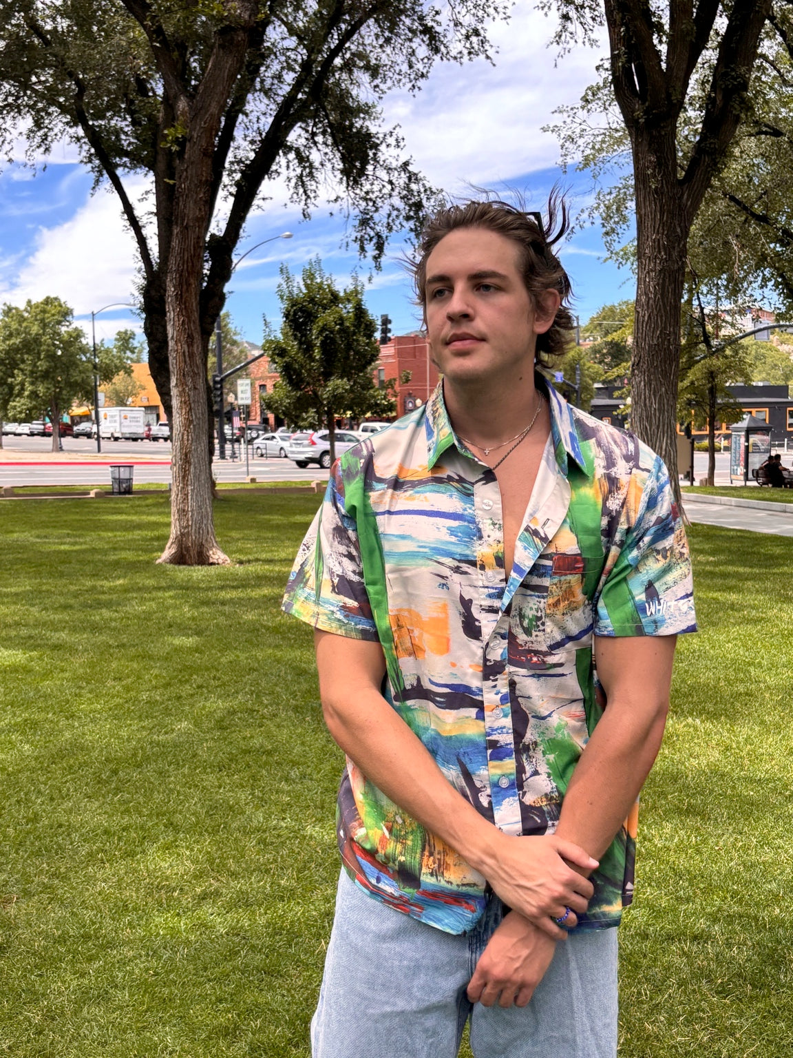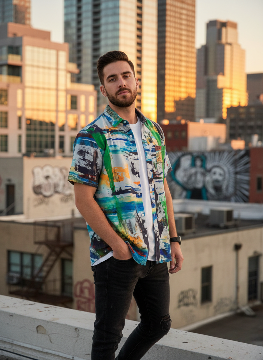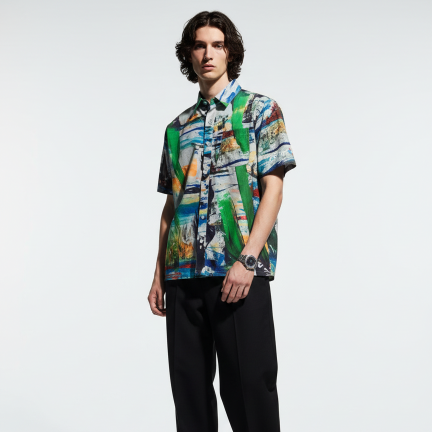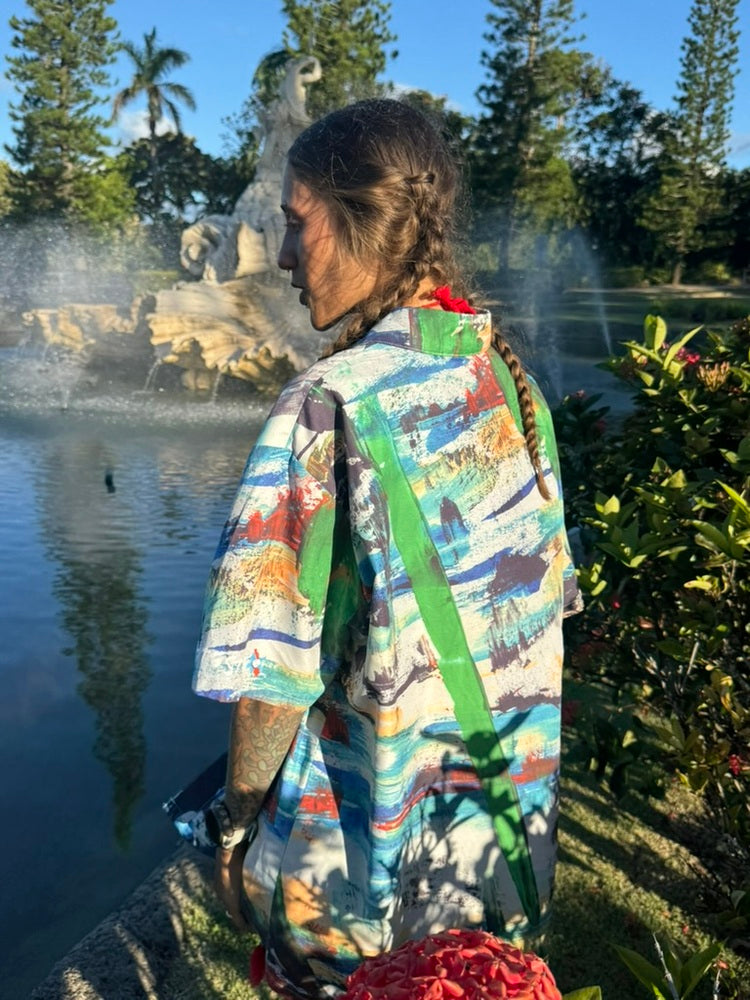With strokes of sky, sea, stone, and sun, this shirt holds the memory of the in-between.
