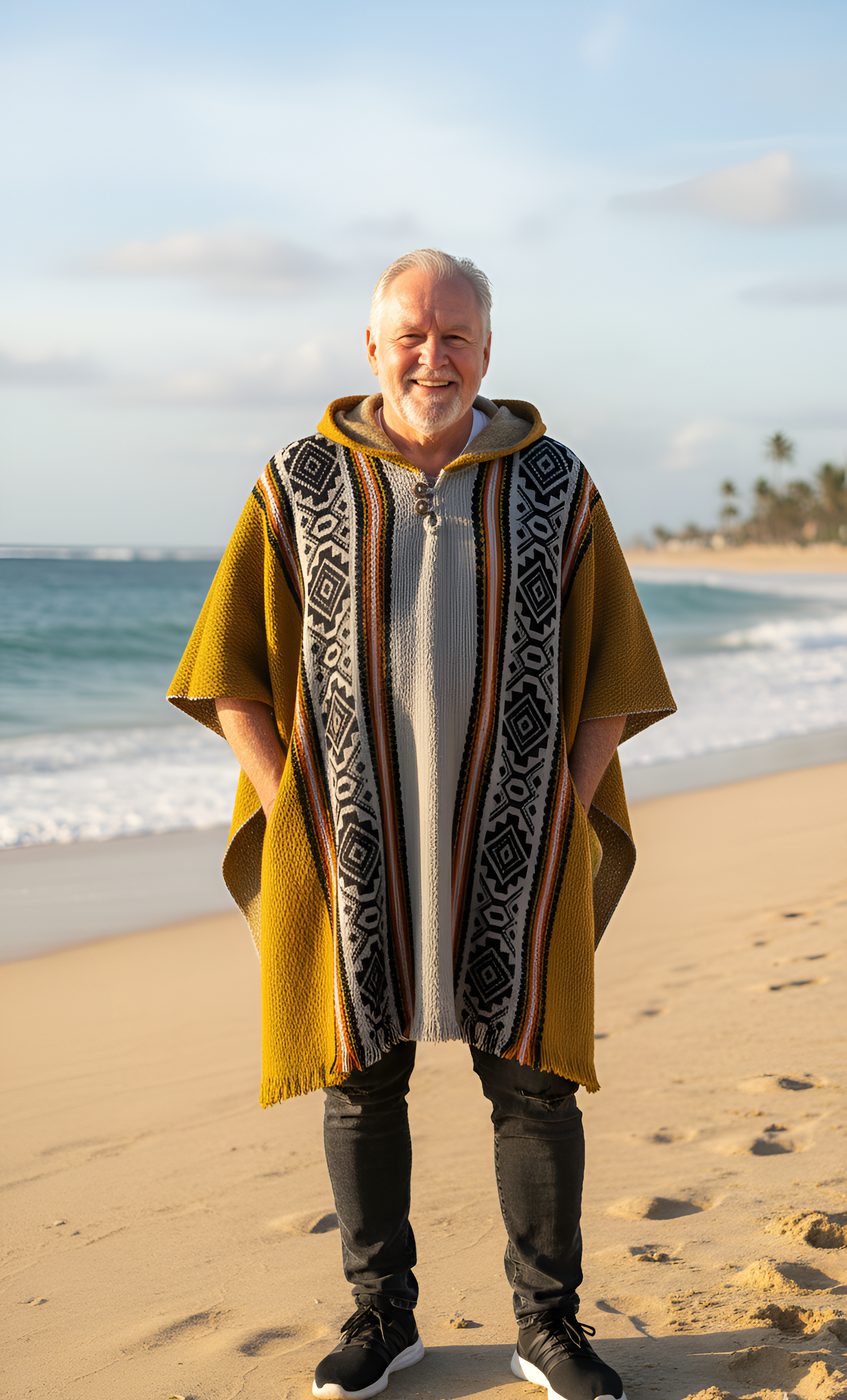 A poncho is a compass cloak—orienting the soul on the human quest.